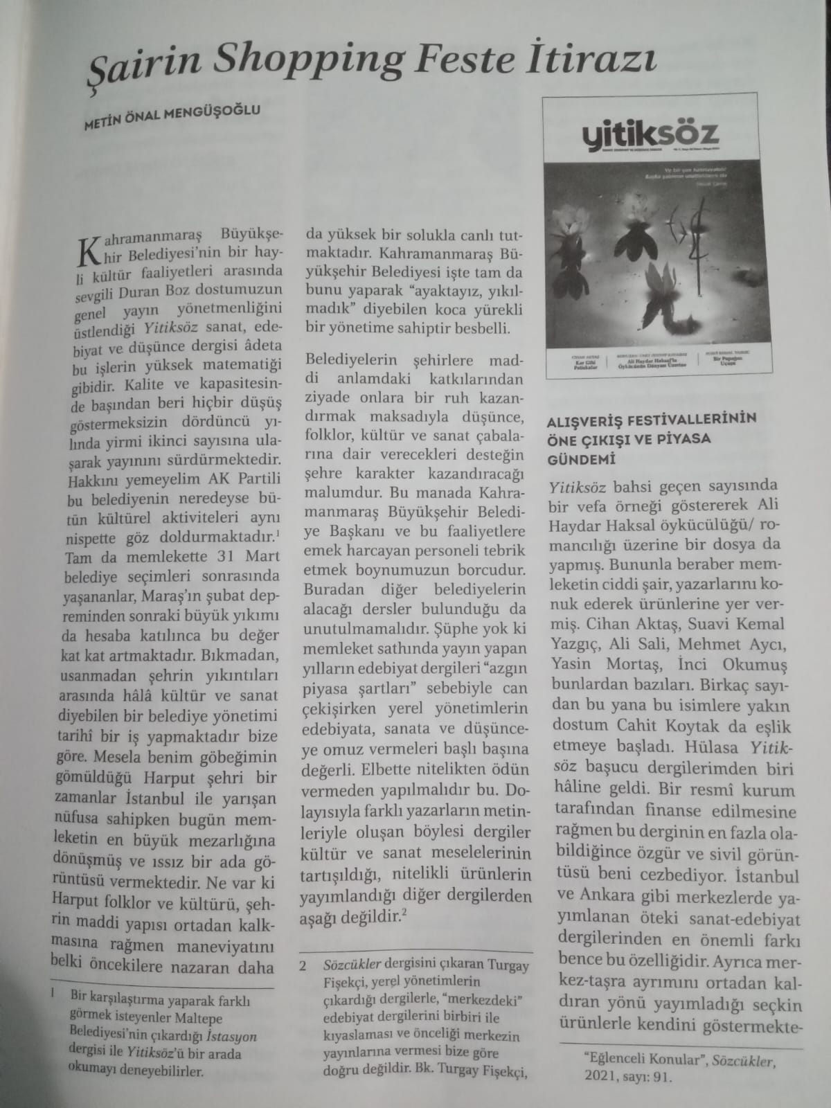 Şairin Shopping Fest’e İtirazı – Metin Önal Mengüşoğlu