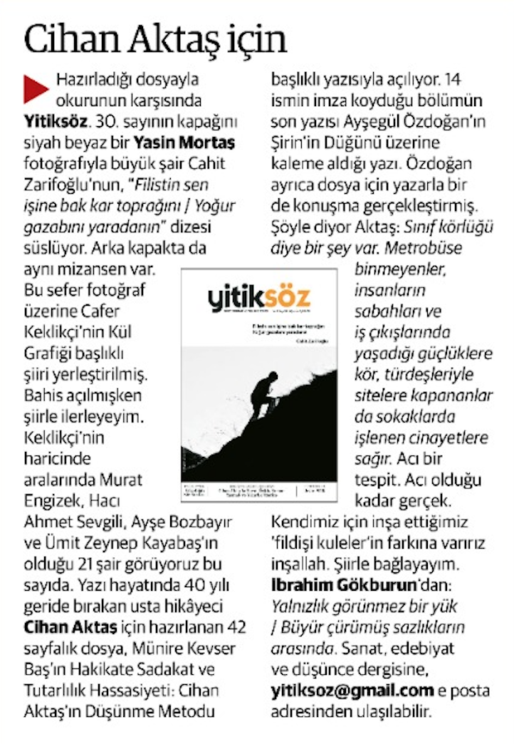Basında Yitiksöz Yeni Şafak Pazar / Dergilik – Hakkı Yanık Kaynak: Yeni Şafak Pazar ekinin Dergilik köşesinde 7 Eylül 2025 Pazar günü yayınlanmıştır.